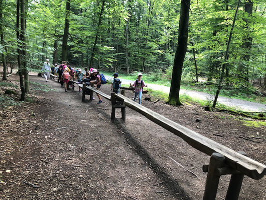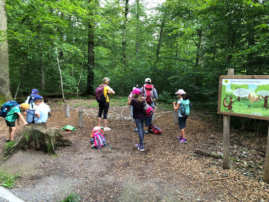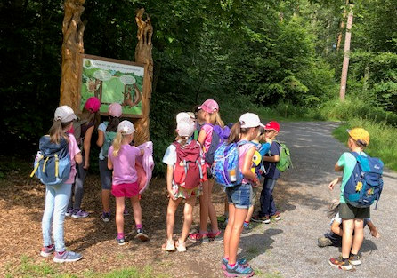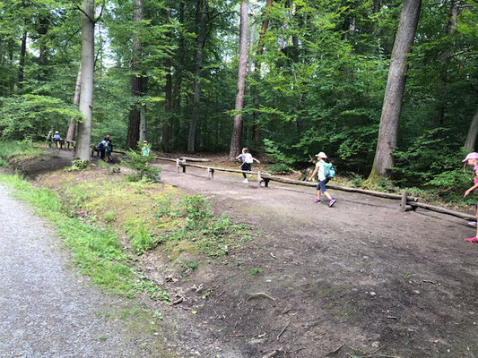 Die teilnehmenden Kinder suchten die Waldtiere, entdeckten Spuren, kletterten auf Netzen, balancierten auf Stangen und durften zum Schluss mit einer (spendierten) Holzkugel die vielen