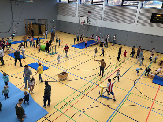 An vielen Stationen durften die Kinder verschiedene Übungen ausführen. Das reichte von der "Kamin-Rutsche", über das Labyrinth, an den Tauen schwingen oder einfach nur Purzelbäume machen.
