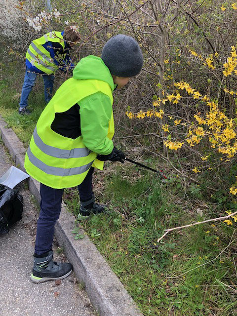 Mit von der Stadt zur Verfügung gestellten Warnwesten, Handschuhen, Greifzangen, Besen und Schaufel bewaffnet zogen wir los.